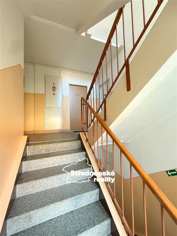 vstupní chodba (vestavěná skříň), kuchyň, koupelna (sprcha, wc, prostor pro pračku, topný žebřík), ložnice (samostatná) a obývací pokoj s balkonem (zasklený). Sklepní kóje je v přízemí domu.